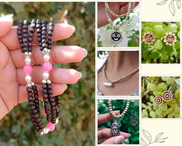 Designer Pure Tulsi Necklace, Japa Mala & Ear studs